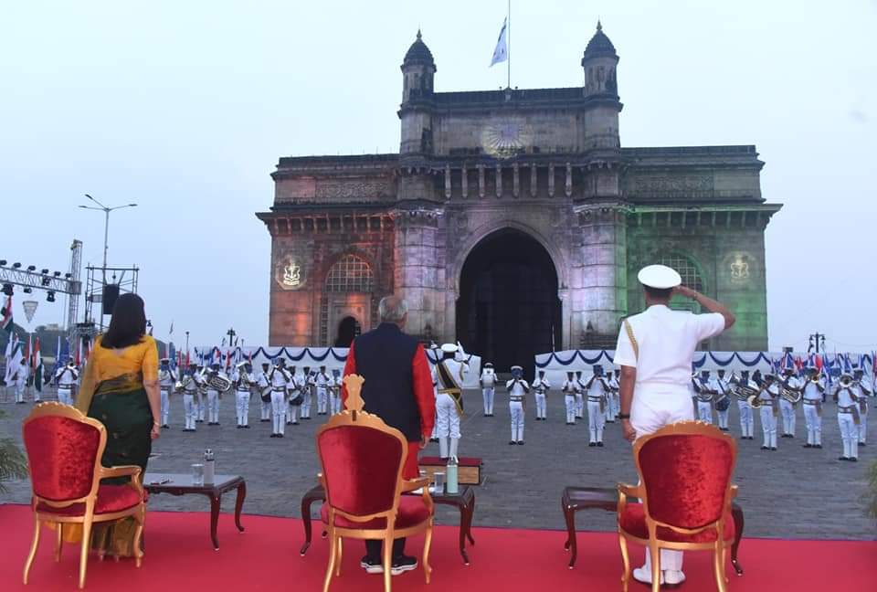 नौसेना दिनानिमित्त भारतीय नौदलाच्या पश्चिम विभाग मुख्यालयातर्फे गेट वे ऑफ इंडिया येथे आयोजित ‘बिटींग रिट्रीट’ आणि ‘टॅटू सेरेमनी’ समारोह राज्यपाल सी पी राधाकृष्णन यांच्या प्रमुख उपस्थितीत गेटवे ऑफ इंडिया मुंबई येथे संपन्न झाला.