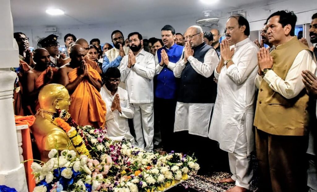 भारतीय राज्यघटनेचे शिल्पकार भारतरत्न डॉ बाबासाहेब आंबेडकर यांच्या ६९ व्या महापरिनिर्वाण दिनानिमित्त राज्यपाल सी. पी. राधाकृष्णन यांनी मुख्यमंत्री देवेंद्र फडणवीस, उपमुख्यमंत्री एकनाथ शिंदे व उपमुख्यमंत्री अजीत पवार यांचेसह चैत्यभूमी मुंबई येथे डॉ आंबेडकर यांच्या अर्धाकृती पुतळ्याला पुष्पचक्र वाहून अभिवादन केले. यावेळी त्रिशरण बुद्ध वंदना करण्यात आली.